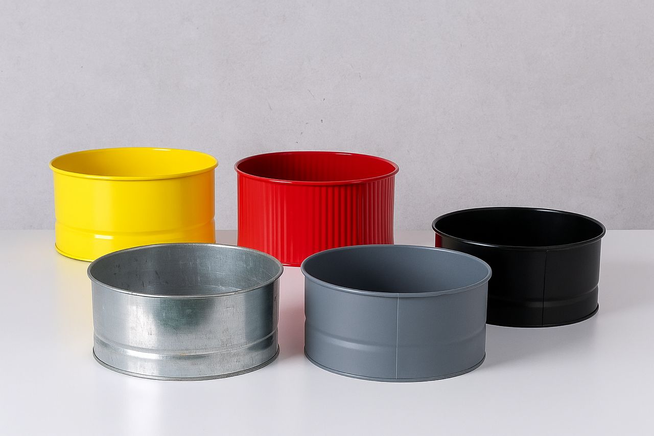 گلدان فلزی گالوانیزه گرد مدل لاین