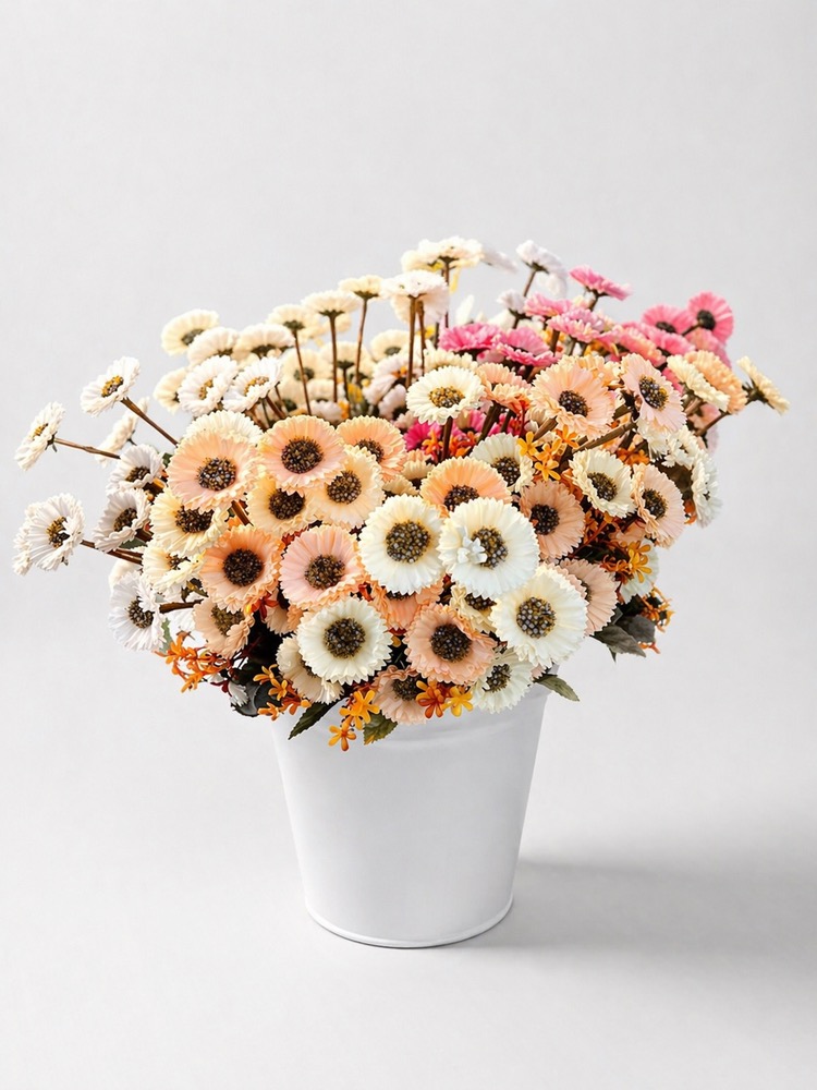 شاخه ارکیده سفید داخل صورتی 9 گل کیفیت لمسی
