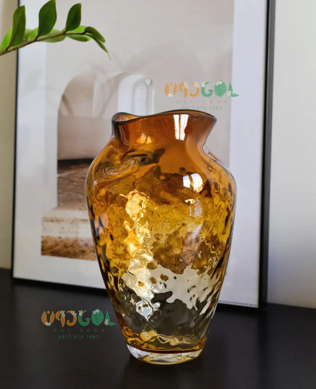 گلدان شیشه ای دفرمه دست ساز مدل ارکیده