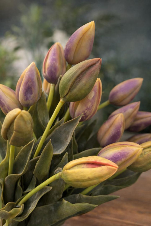 مدل غنچهای با رنگبندی خاص بنفش و سبز چرک، انتخابی مدرن و متفاوت برای دکوراسیون مینیمال، گلدانهای تزئینی و فضاهای هنری به شمار میرود.