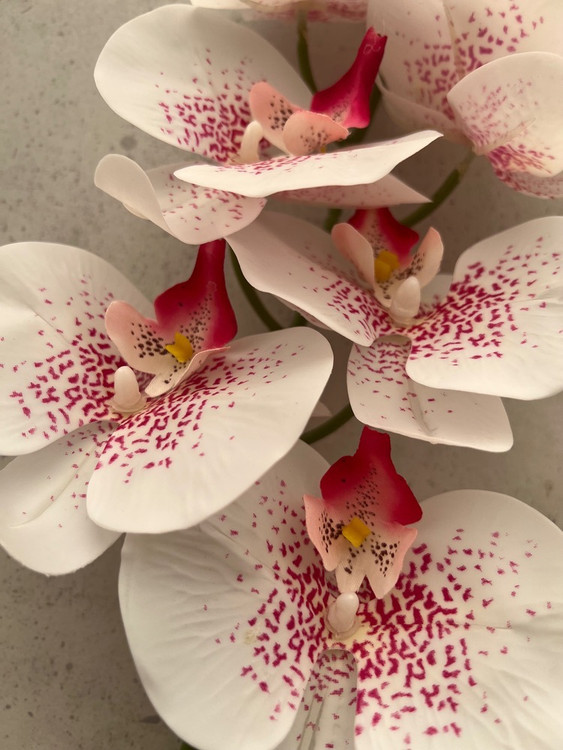 این شاخه گل ارکیده با ۹ گل طبیعینما، یکی از خاصترین انتخابها برای دکوراسیون داخلی است. کیفیت بالای متریال و طراحی لمسی آن باعث شده هر گلبرگ با ظاهری واقعی و ظریف جلوه کند. ارتفاع شاخه ۹۰ سانتیمتر بوده و بهصورت تک شاخه عرضه میشود، بنابراین میتوانید آن را هم بهتنهایی در گلدان قرار دهید و هم در ترکیب با گلهای دیگر برای ایجاد دکوراسیونی لوکس و چشمنواز استفاده کنید.