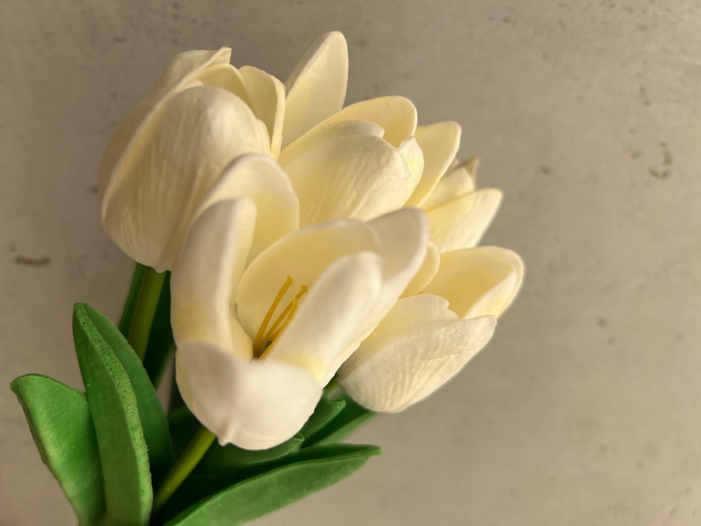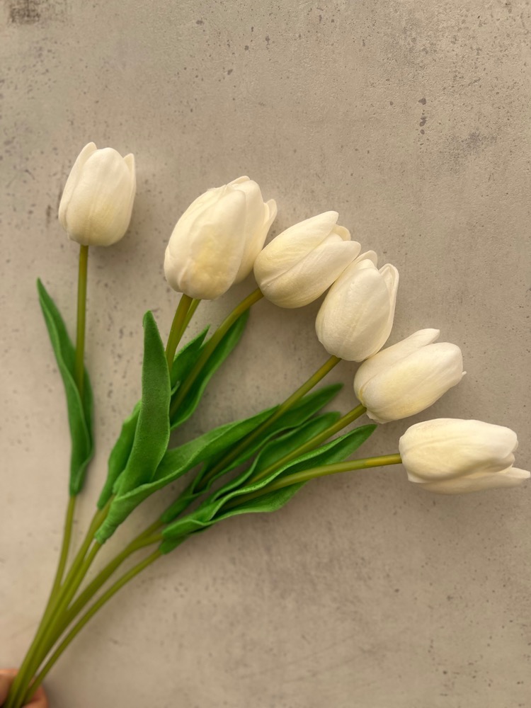 دسته گل لاله نیمه باز سفیدکرمی لمسی ( 5 شاخه) درجه دو