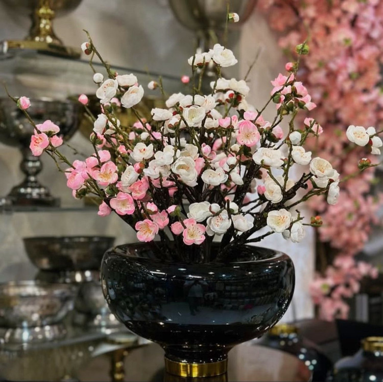 این گلدان شیشهای دکوری با طراحی منحصر به فرد، بدنهی براق مشکی و پایهی فلزی طلایی، انتخابی لوکس برای دکوراسیون منزل، لابی هتل، فضای پذیرایی یا فروشگاههای شیک است. ترکیب جذاب رنگ مشکی با پایهی طلایی، جلوهای کلاسیک و در عین حال مدرن به فضای شما میبخشد.