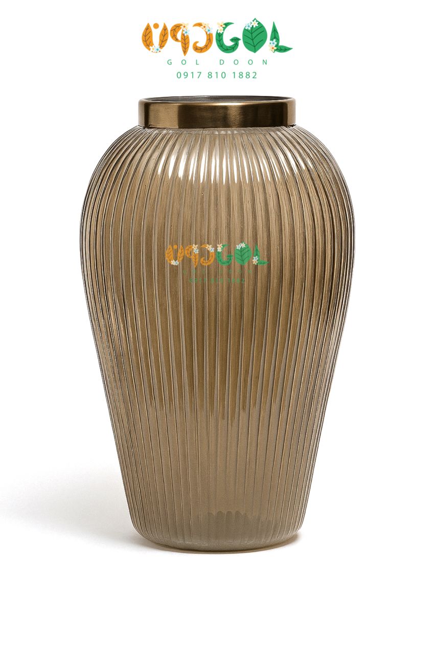 گلدان فلورا با طراحی خاص شیشهای و شیارهای عمودی منظم، انتخابی فوقالعاده برای علاقهمندان به دکوراسیون مدرن و مینیمال است. قسمت لبهی گلدان با فلز براق تزیین شده که علاوه بر جلوهی لوکس، استحکام بیشتری به ساختار آن میبخشد.