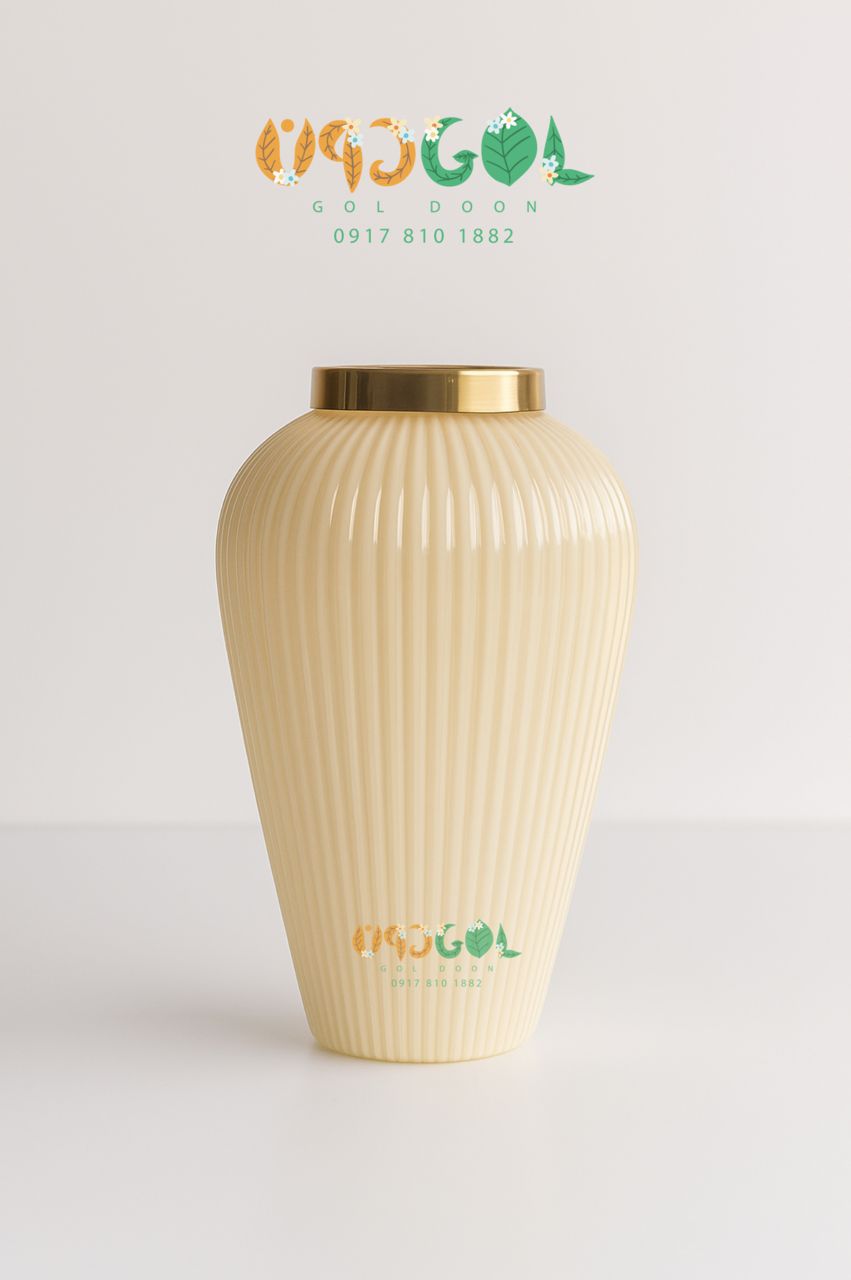 گلدان شیشهای مدل کد ۲ - خطی متوسط رنگ کرم سنگی
