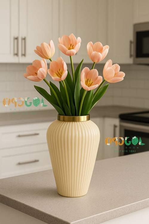 این گلدان شیشهای با طراحی مدرن و شیارهای عمودی منظم، انتخابی زیبا برای دکوراسیون خانه، آشپزخانه یا محیطهای اداری است. ترکیب رنگهای خاص در مدلهای مختلف، این گلدان را به یک المان دکوراتیو خاص و چشمنواز تبدیل کرده است. دهانه باریک آن مناسب برای شاخه گلهای طبیعی یا مصنوعی است و بدنه محکم شیشهای، دوام و ظرافت را همزمان ارائه میدهد.
