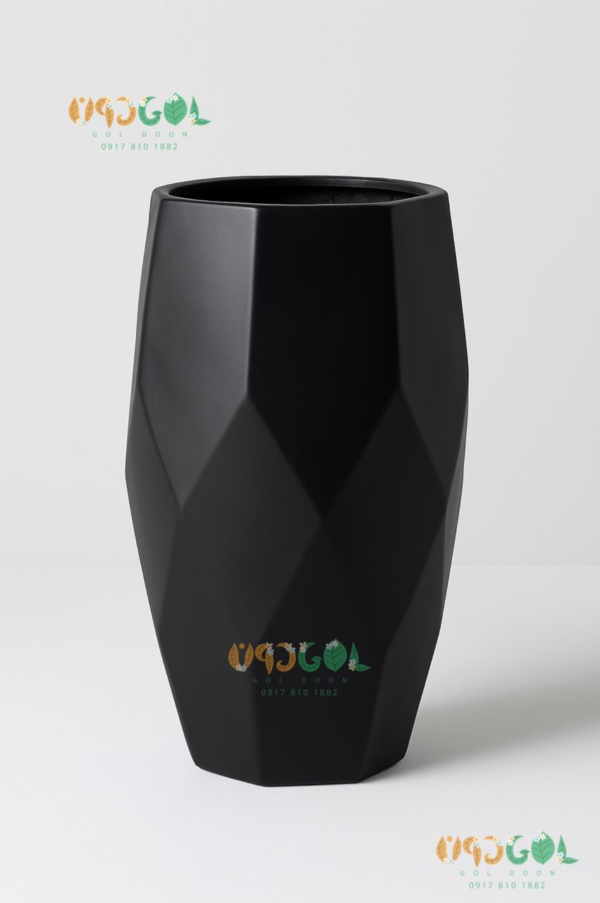 🌿 گلدان فایبرگلاس چندضلعی مشکی - ارتفاع ۶۵ سانتیمتر