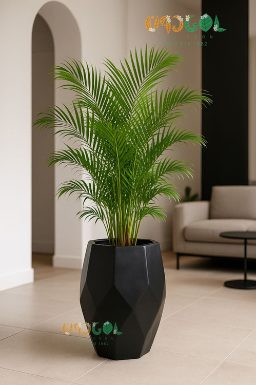این گلدان فایبرگلاس با طراحی چندضلعی و زاویهدار، ظاهری مدرن و خاص به دکوراسیون شما میبخشد. سطح مات و رنگ مشکی آن، انتخابی لوکس و متمایز برای فضاهای مینیمال و مدرن است. با دهنه ۳۵ سانت و ارتفاع ۶۵ سانت، برای قرار دادن گیاهان برگدار و تنهدار مانند نخل اریکا، انتخابی ایدهآل است.